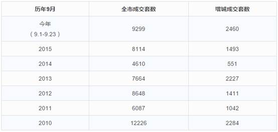 而今年九月,却是超越历史,成为限购6年以来最火爆的九月。仅23日的成交量,便抵上了前几年每个九月的整月成交量。