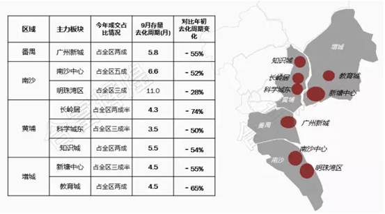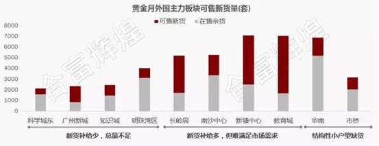 据合富辉煌预统计,广州多个支撑区域楼市成交的外围板块:番禺的广州新城;黄埔的长岭居、科学城东、知识城;增城的新塘中心、教育城六大主要板块,消化周期均在6个月以下,呈现明显的“供不应求”特征。