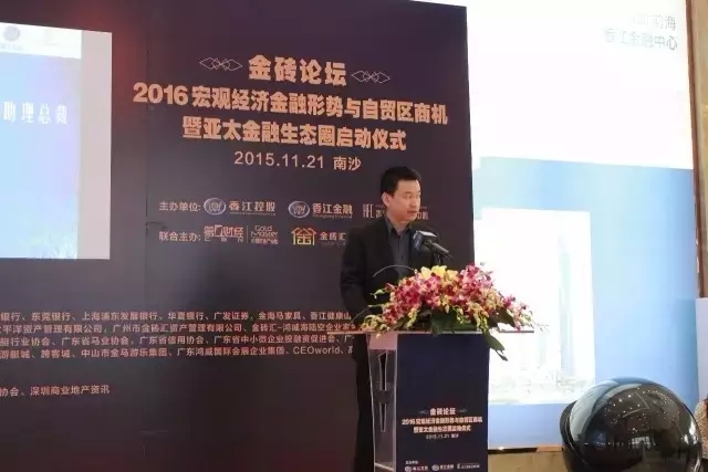 11月21日,在香江国际金融中心,举办了2016宏观经济金融形势与自贸区商机暨亚太金融生态圈启动仪式,众多金融专家畅谈金融形势、自贸区商机等话题,香江集团也重磅发布了亚太金融生态圈,并将金融平台正式落地至香江在南沙自贸区内的首发项目——香江国际金融中心。