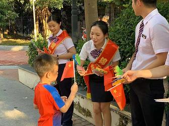 艳阳当头照,万里晴空,天气正好。锦江物业的保安们早已集合完毕,时刻准备应对突发事件,坚决保障活动的正常秩序。游园晚会的入口处,物业的小姐姐、小哥哥们早已在此等候,笑脸相迎每一位来宾。恰迎祖国七十周年庆,物业小姐姐小哥哥们给过往的小朋友们派发小国旗,小朋友们拿到小国旗都非常开心,摄影师在一旁偷偷抓拍这一刻的美好,到处洋溢着喜悦之情。