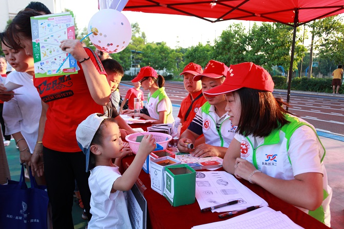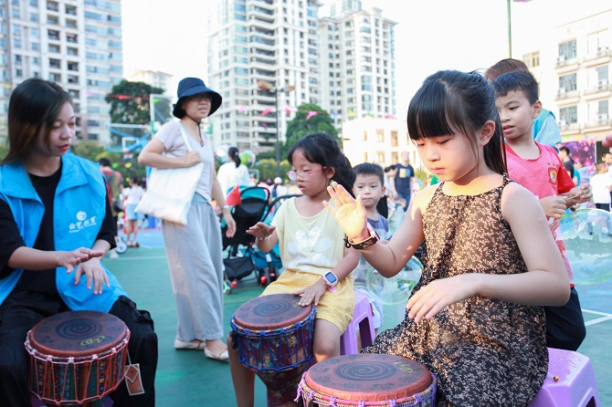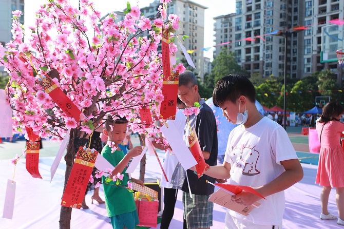 下午四点半,游园活动正式开始,今年的游园活动不仅有一直深受业主喜爱的趣味游戏,如神箭手、大富翁、抖金蛋、竞技叠杯、手脚并用、眼疾手快等,还考虑到低龄小朋友的需求,设置了如波波池、钓鱼、充气城堡等专属游戏。除了这些小游戏,锦江物业还特意准备了让人耳目一新的特色游戏,不仅为迎合全国垃圾分类宣传,专门设立了垃圾分类小游戏,帮助小朋友们从小树立爱护环境意识,还有民族特色的非洲鼓。最让人惊喜的不过于是球场中央的桃花树下的猜灯谜游戏,一片美轮美奂的桃花源吸引了众多来宾停驻拍照打卡。在活动现场,无论是男女老少,各种游园活动让大家应接不暇,欢声笑语响彻整个现场。
