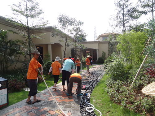 为了支持翡翠绿洲十一期组团凡尔赛宫2期的开盘销售工作,在控股分管领导及主管部门的指导与要求下,开盘前三天(2013年5月22日-24日),广州香江物业在谢双贤总经理带领下围绕控股营销中心的《开盘方案及工作安排》对销售现场的保洁、绿化景观、设备运行(中央空调为主)和车辆秩序管理等方面进行了全面紧密的部署。以超日常的质量及服务标准增添了销售现场尊贵服务氛围,确保了26日开盘销售当天活动的顺利进行,同时展现了香江物业管理的风采。