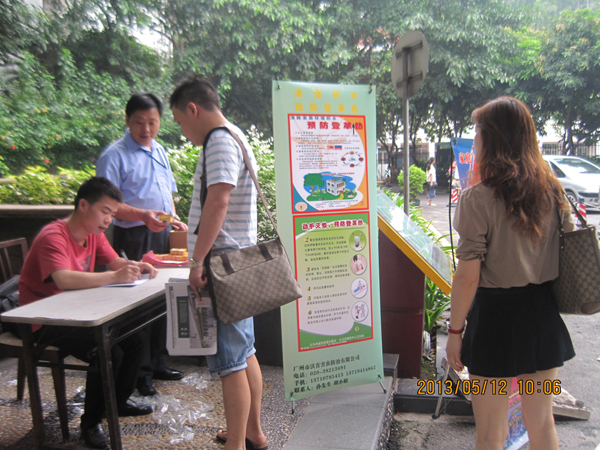 在6月份,管家部还分别在紫荆园商业街、山水园商业街广场、华府二期广场进行灭四害宣传,共派发灭蚊片780盒,灭蟑清380包。活动现场解答家居日常防蚊灭蟑知识,呼吁业主花园尽量少放置瓶罐等容器,平时常清理花园积水和落叶。在我司采取多种灭蚊措施和业主的极力配合下,大量减少了蚊虫密度,共同营造了美好的居住环境。