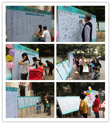 3月20日,锦江物业公司率先在紫荆园拉开了拒绝高空抛物宣传活动的序幕。在活动现场摆放了6块宣传展板,分别有高空抛物法律常识、高空抛物危害、案例等内容,形象生动地宣传高空抛物不文明现象带来的危害及可能涉及的法律责任,客户服务部物业助理向业主派发《杜绝高空抛物倡议书》,呼吁全体业主共同抵制高空抛物的不文明行为,做文明、守纪的锦江人。在现场还摆设了一块为“支持拒绝高空抛物行为”主题的签名版,业主们纷纷郑重签下自己的名字,拒绝不文明行为,从自己做起,签名版满版都是业主签名。