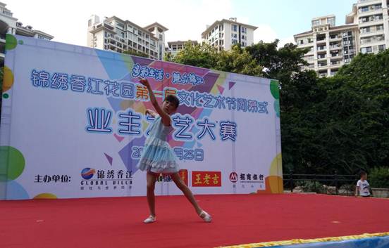 6月25日,锦绣香江花园第一届文化艺术节闭幕式暨“业主才艺大赛”在华府二期广场举行。本次业主才艺大赛吸引了锦江80多名业主参赛,其中年龄最小的只有九岁,年龄最大的六十多岁,整场表演持续两个多小时,为广大业主献上了一出精彩绝伦的视觉盛宴。